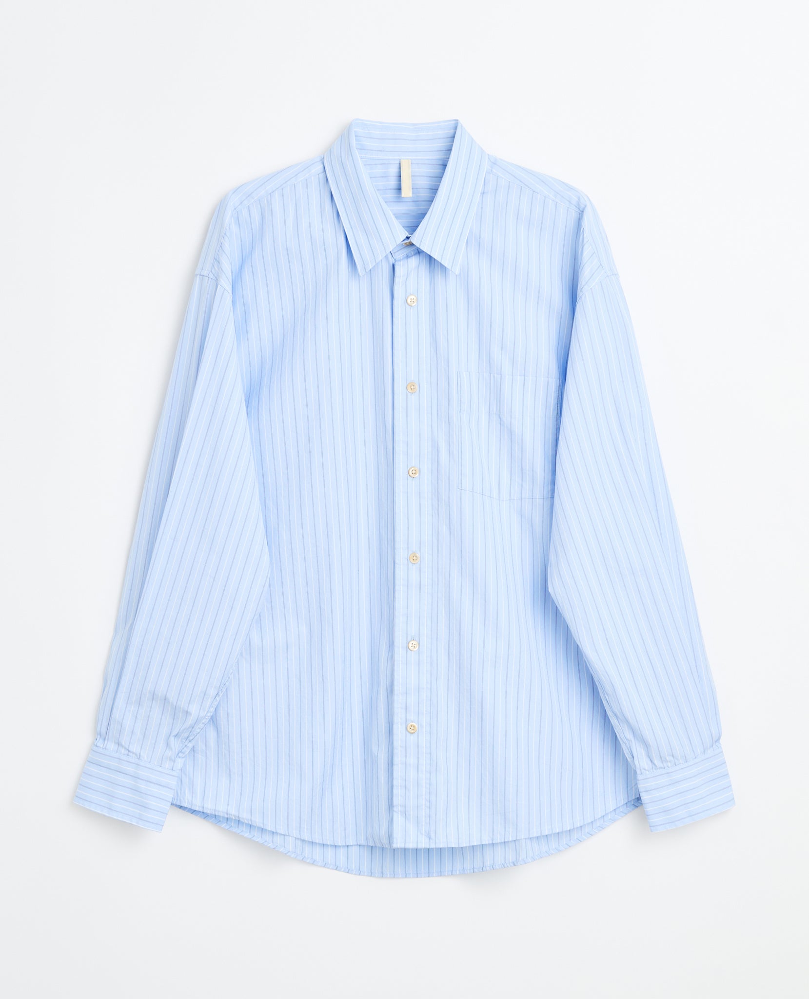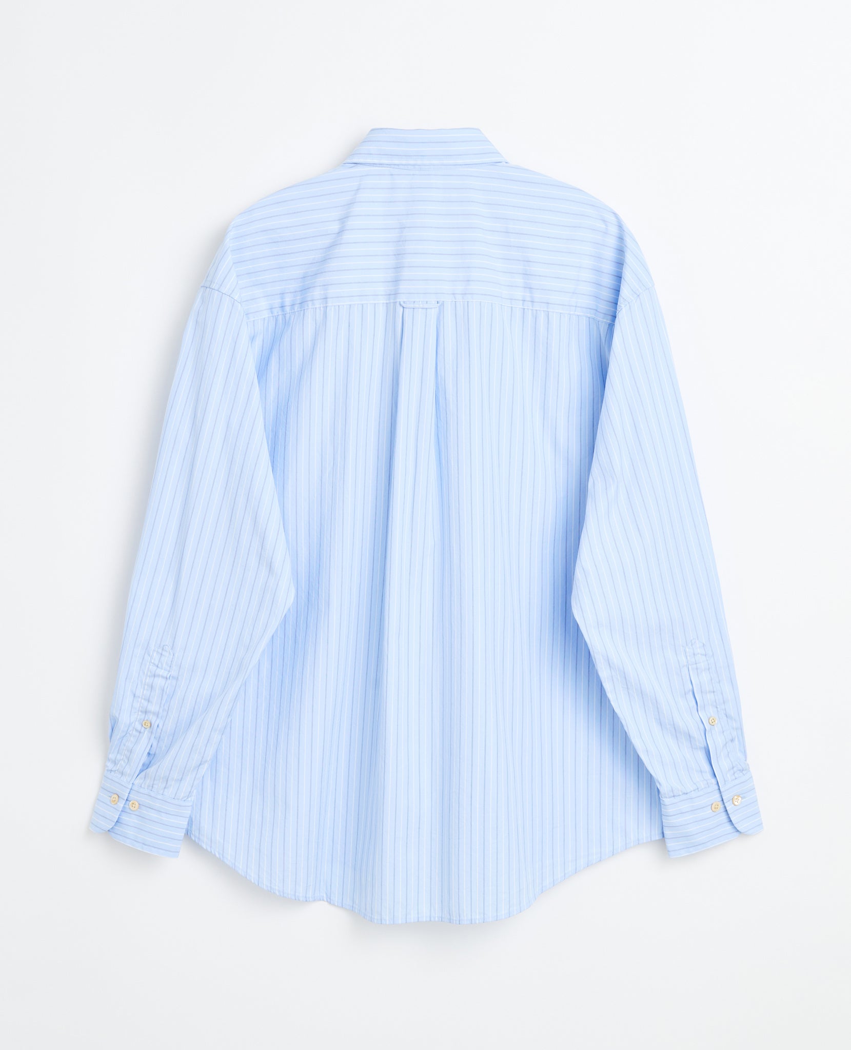 Classic button up shirt with locker loop and pleat in back. Fitting is slightly oversized.