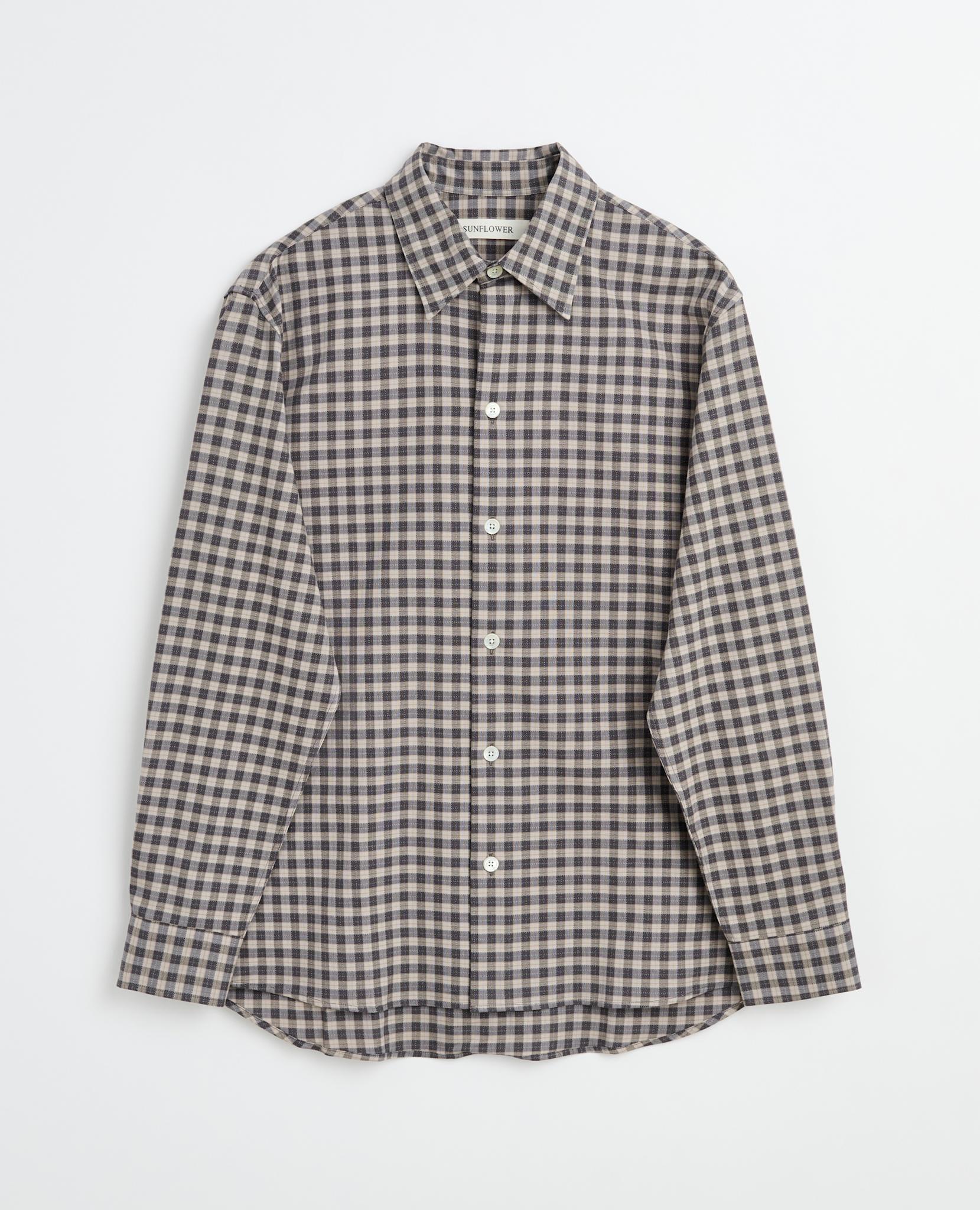 Checked classic shirt with split collar and curved hem