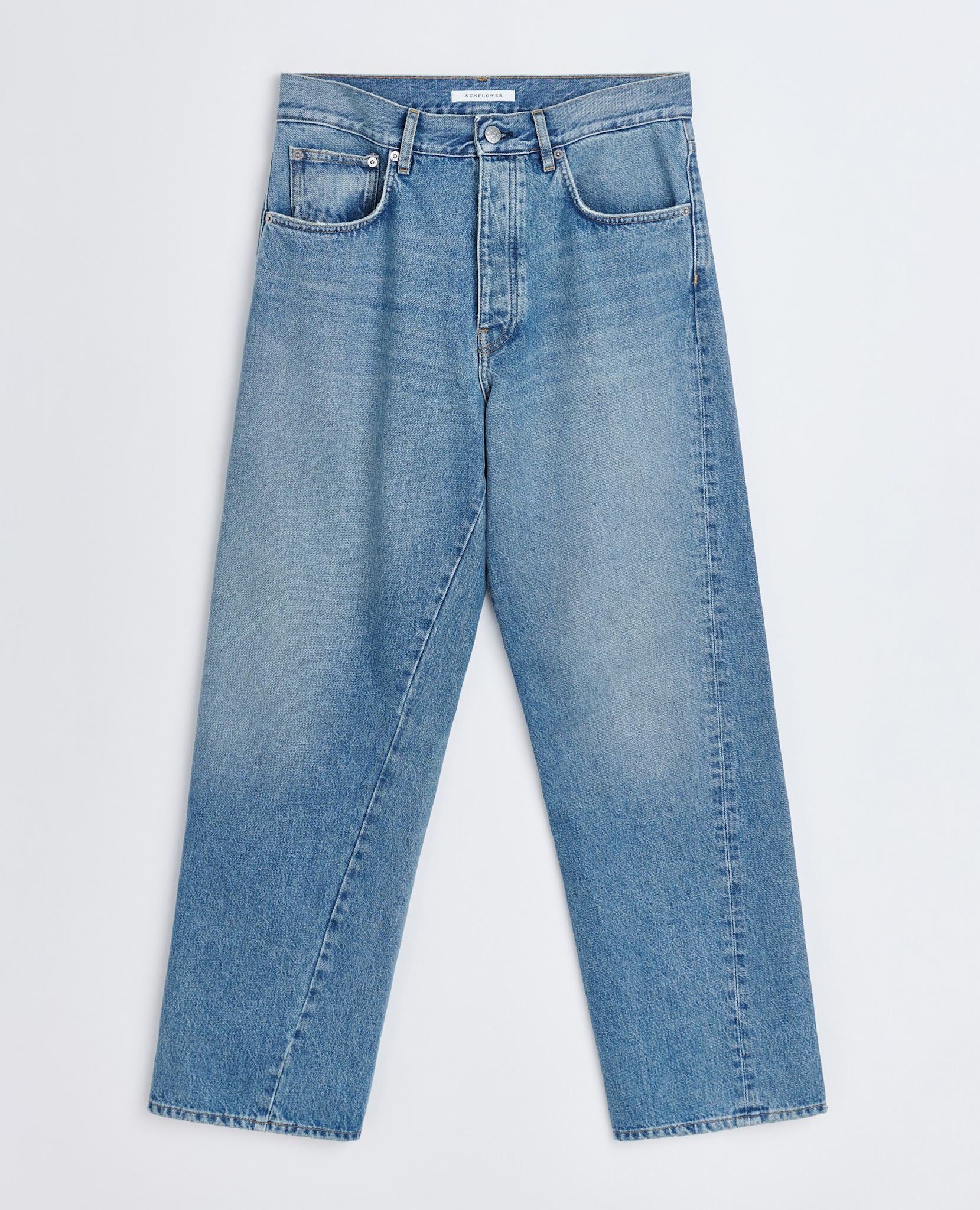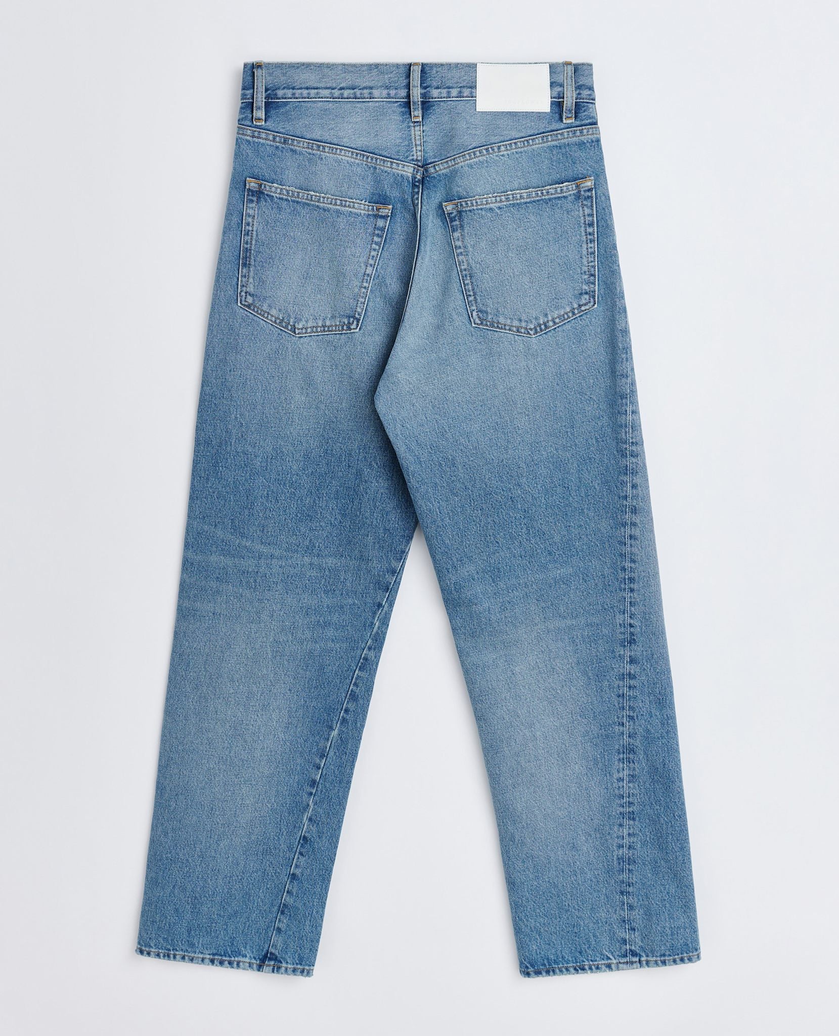 Washed down to mid blue tone, hand made vintage effect
